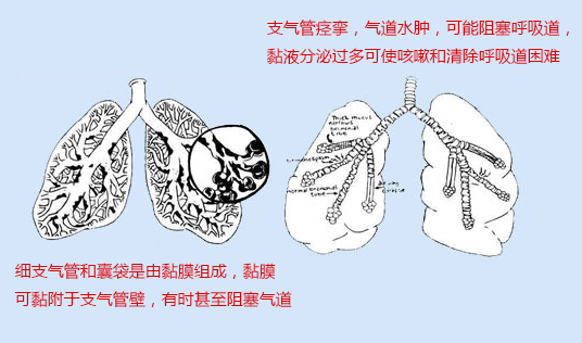 以上呼吸道對外界的敏感性增高為特性,引起氣道狹窄分泌物不能排出。應(yīng)解除支氣管痙攣以擴張支氣管。