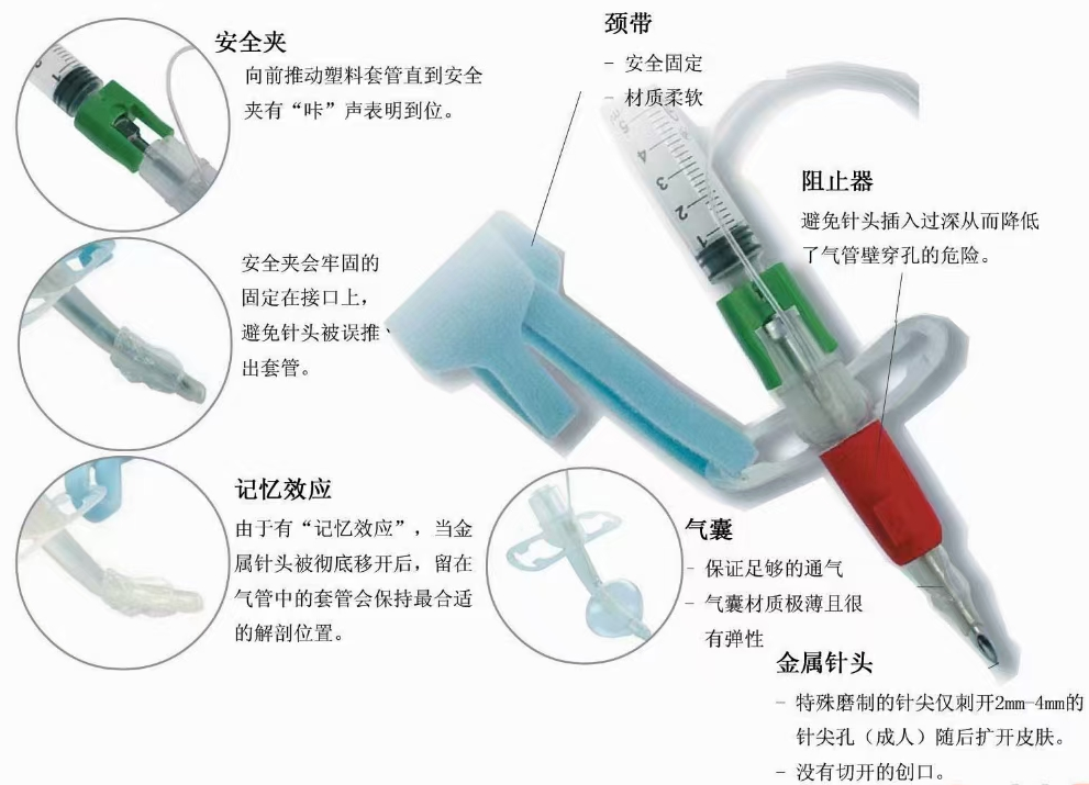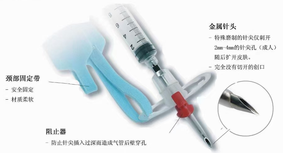 3、阻止器可以防止針頭插入過深,降低氣管壁穿孔的危險(xiǎn);