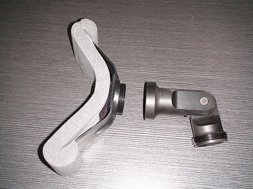 1. 將叩擊接合器(彎狀的連結(jié)裝置)的一端旋進(jìn)纜線裝配頭的面板,另一端旋入叩擊頭,將接好的叩擊頭放在主機(jī)邊的支架上。