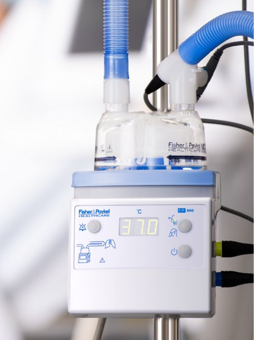 機械通氣時氣道濕化包括主動濕化和被動濕化。主動濕化是指在呼吸機管路內(nèi)應用加熱濕化器進行呼吸氣體的加溫加濕(包括不含加熱導絲、含吸氣管路加熱導絲,含吸氣呼氣雙管路加熱導絲)。費雪派克 MR850 濕化系統(tǒng)是最佳濕化解決方案,所以臨床上大都使用的是 MR850 加熱濕化器和含吸氣管路加熱導絲的裝置。