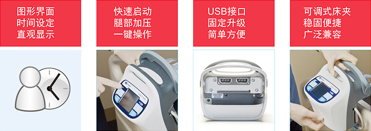 ②圓周壓力:通過充氣腿套對(duì)腿部進(jìn)行圓周壓力,有效清除靜脈瓣后血液瘀積;