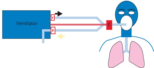 (圖1 呼吸機(jī)的吸氣和呼氣端分別安裝過(guò)濾器)