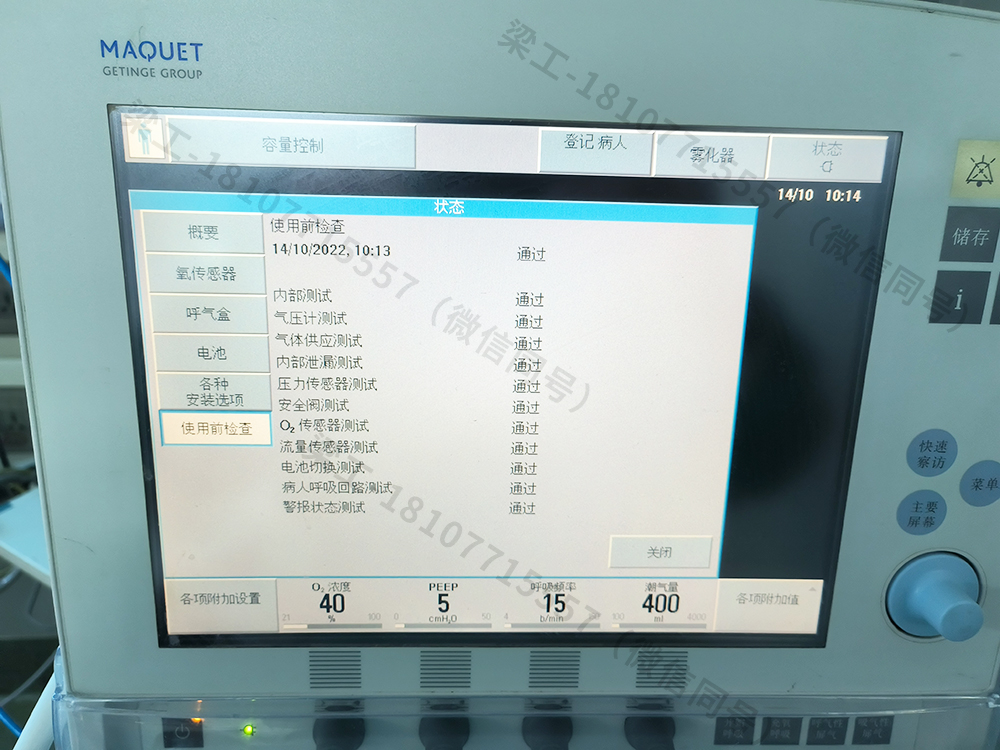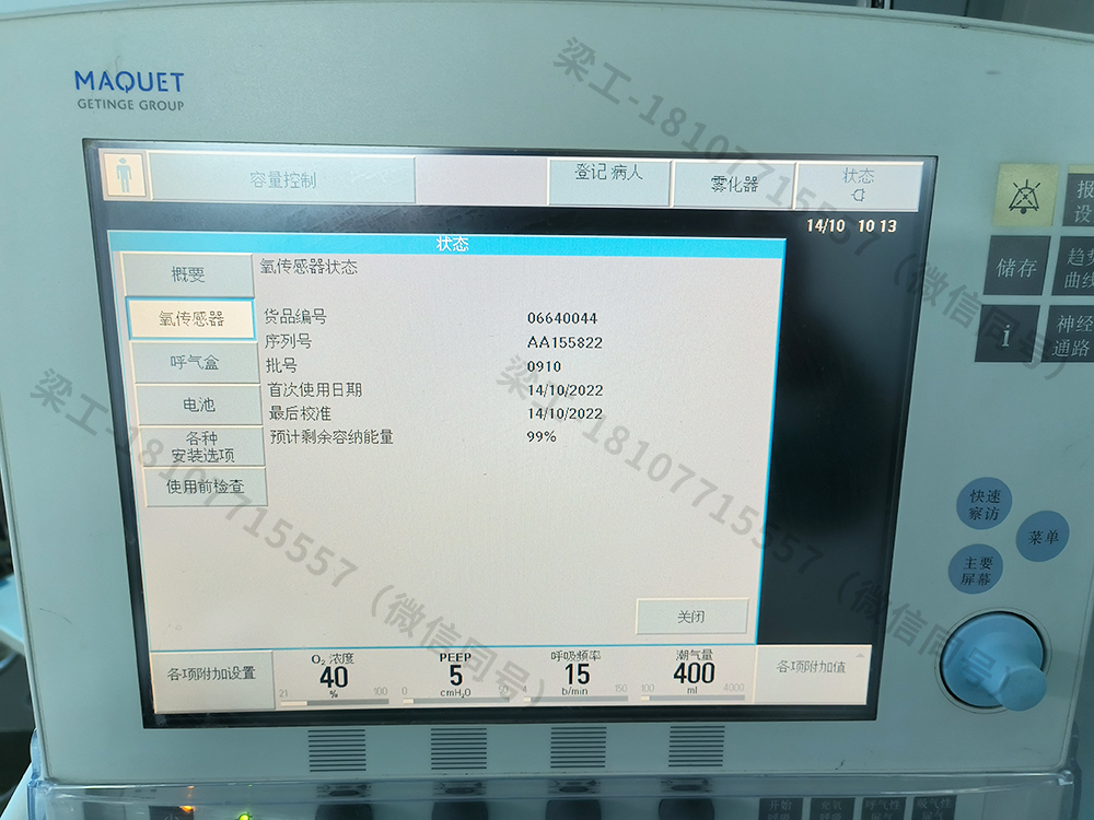 找到氧電池的位置。2、換新氧電池換新的氧電池,注意插針一定要對準孔插。3、接氧氣瓶,測試管通電,接好氣源。4、使用前檢查在開始定標之前,要先做使用前檢查。5、開始定標6、定標完成7、定標完成后測試檢查邁柯唯呼吸機兼容氧電池(氧氣傳感器)型號:M02-S,質保一年適用機型:邁柯唯servo-i、servo-s
