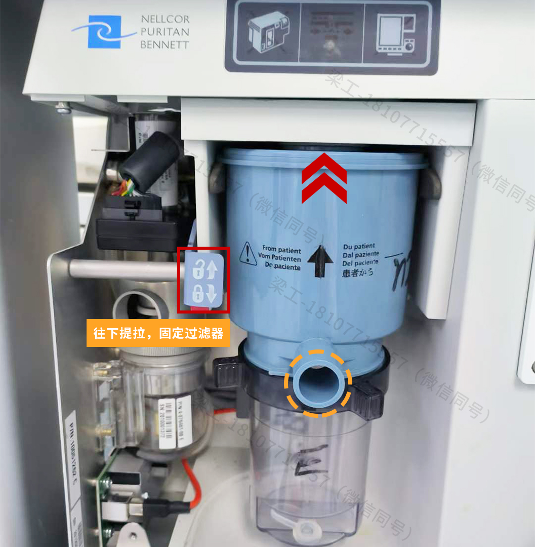 1.將呼出端過(guò)濾器鎖扣向右邊旋轉(zhuǎn),聽(tīng)到“咔”的一聲即可。 2.將集水杯排水口膠塞與呼氣支口對(duì)準(zhǔn)在同一水平線上,將集水杯卡緊在過(guò)濾器下方,然后往左邊扭緊。 3.將呼吸機(jī)主機(jī)左側(cè)鎖定裝置往上提拉至解鎖狀態(tài)。 4.將呼氣支口朝外,沿滑軌放入,并使呼出端過(guò)濾器邊緣滑到安裝槽內(nèi),推到最里面,推到不能推動(dòng)為止;放下左側(cè)鎖定裝置,固定呼出端過(guò)濾器。 二、拆卸 1.將左側(cè)鎖定裝置往上提拉至解鎖狀態(tài),取出呼出端過(guò)濾器。 2.將呼出端過(guò)濾器鎖扣向右邊旋轉(zhuǎn),取下集水杯。 3.將集水杯內(nèi)的冷凝水倒入專(zhuān)門(mén)收集醫(yī)療廢棄物的容器。 (因?yàn)榧睦淠赡軒в袀魅静【?/span> 4.擦干呼出端過(guò)濾器及集水杯的水珠,送去供應(yīng)室進(jìn)行消毒。 三、消毒 PB840呼吸機(jī)的呼出端和吸氣端過(guò)濾器應(yīng)該采用高溫高壓的方式進(jìn)行消毒(溫度132-134℃,20分鐘) 注意:溫度不宜超過(guò)135℃,禁止浸泡! 四、PB840呼吸機(jī)耗材(呼出端過(guò)濾器集水杯、吸入端過(guò)濾器、呼出端過(guò)濾器) PB840呼吸機(jī)流量傳感器 PB840呼吸機(jī)兼容氧電池 PB840呼吸機(jī)空壓機(jī)保養(yǎng)套件