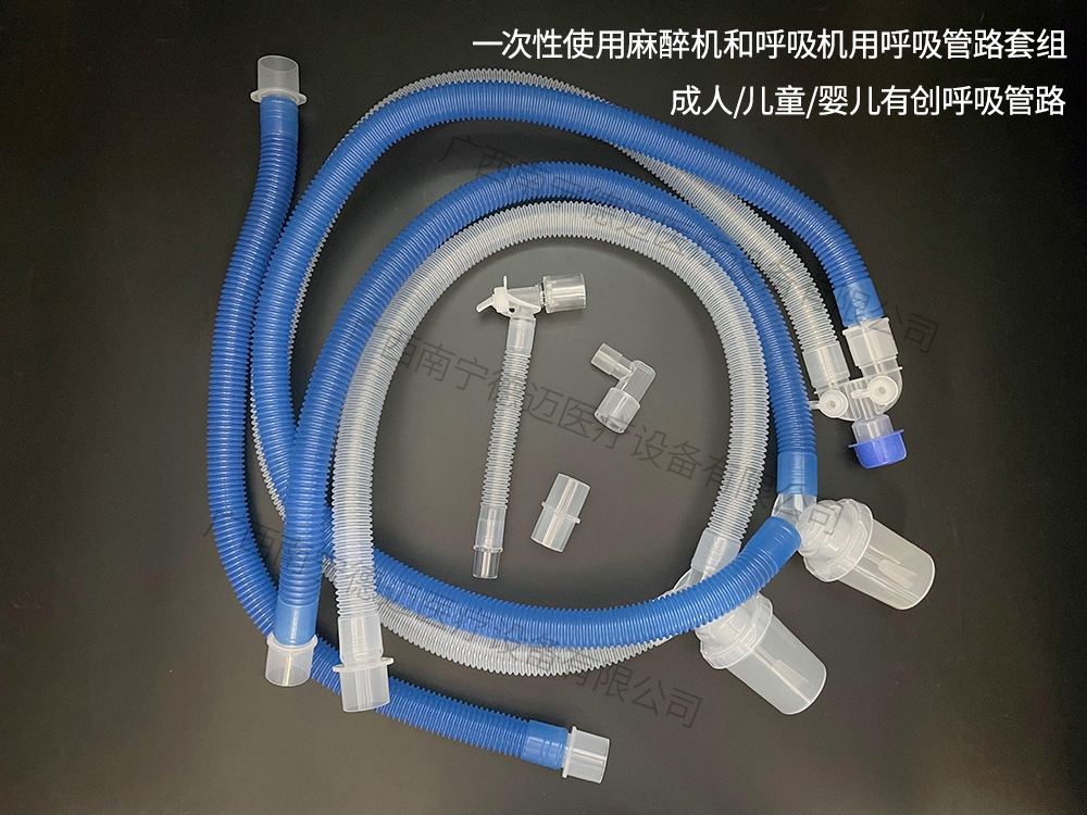 適用范圍: 搭配有創(chuàng)呼吸機(jī)使用,適用于麻醉機(jī)、呼吸機(jī)接口與供氧面罩的管路連接,作為麻醉氣體、氧氣進(jìn)入人體內(nèi)的通道。 1、結(jié)構(gòu)組成 一次性使用麻醉機(jī)和呼吸機(jī)用呼吸管路套組包括單管路型和雙管路型,由波紋管、接頭(直型、Y型、L型、T型)、轉(zhuǎn)換接頭、集水杯(選配)、壓力管(選配)、延長(zhǎng)管(選配)、單向閥(選配)和儲(chǔ)氣囊(選配)組成。以無菌形式提供,經(jīng)環(huán)氧乙烷滅菌,一次性使用。